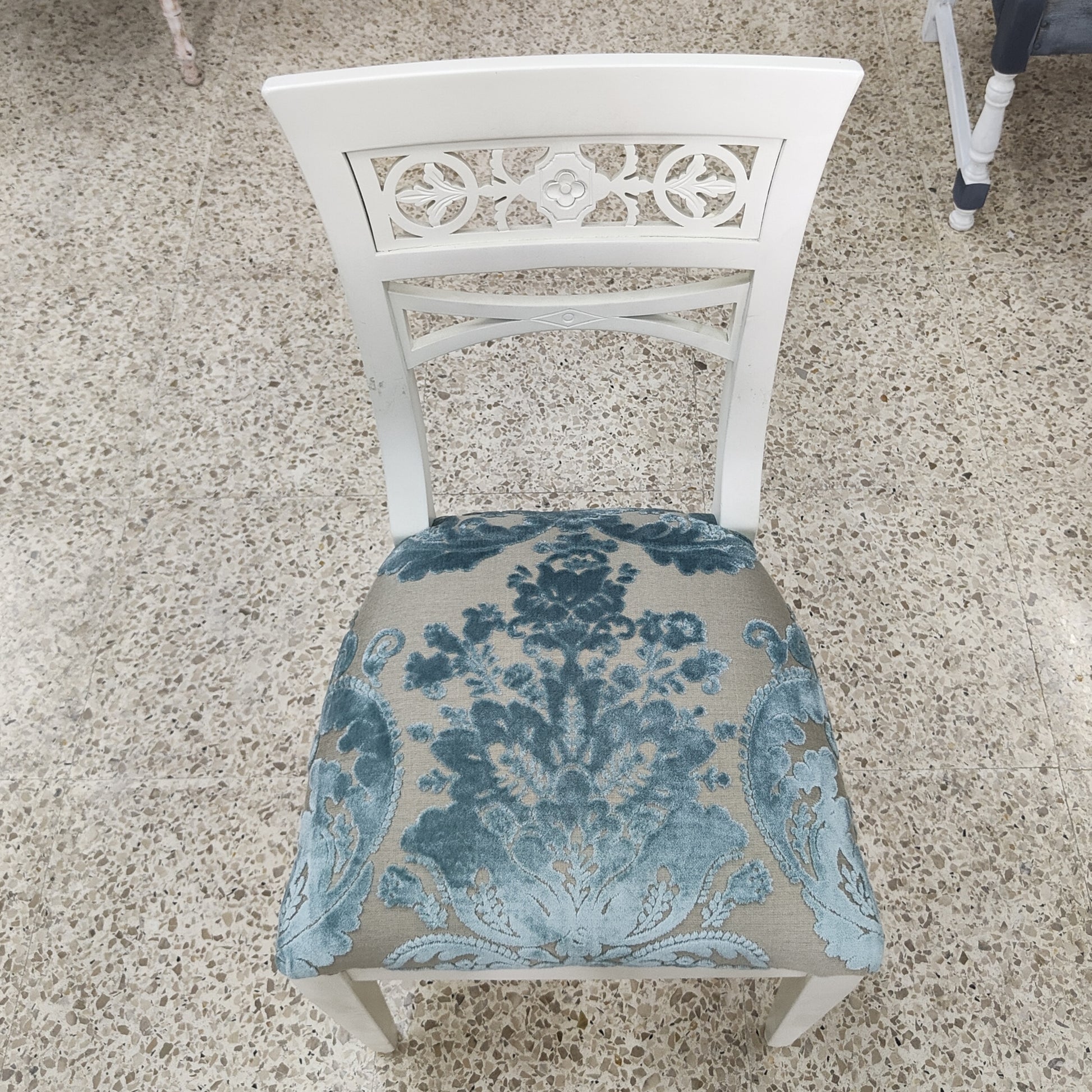 4 sedie shabby restaurate a partire da pezzi originali d'epoca.