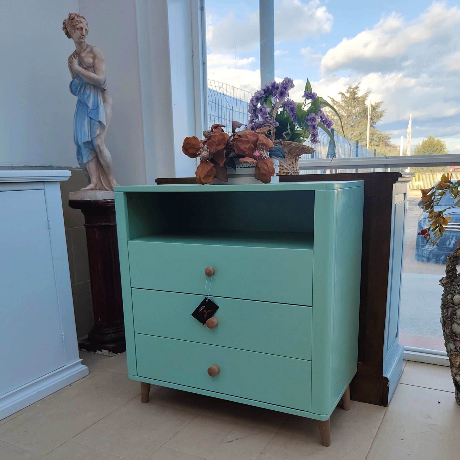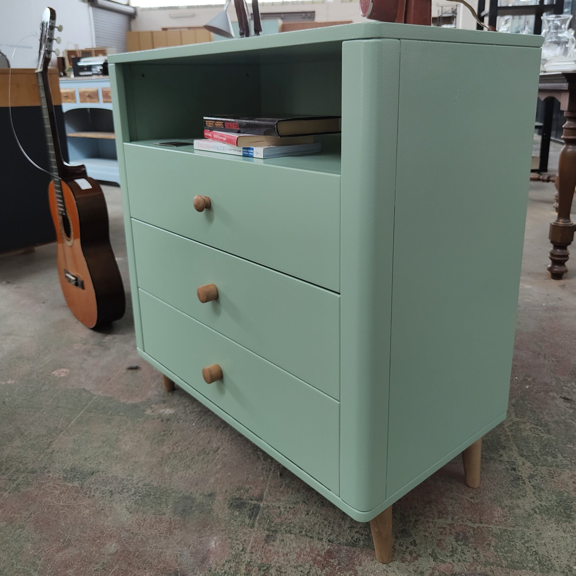 Colore verde con pomelli e gambe in legno