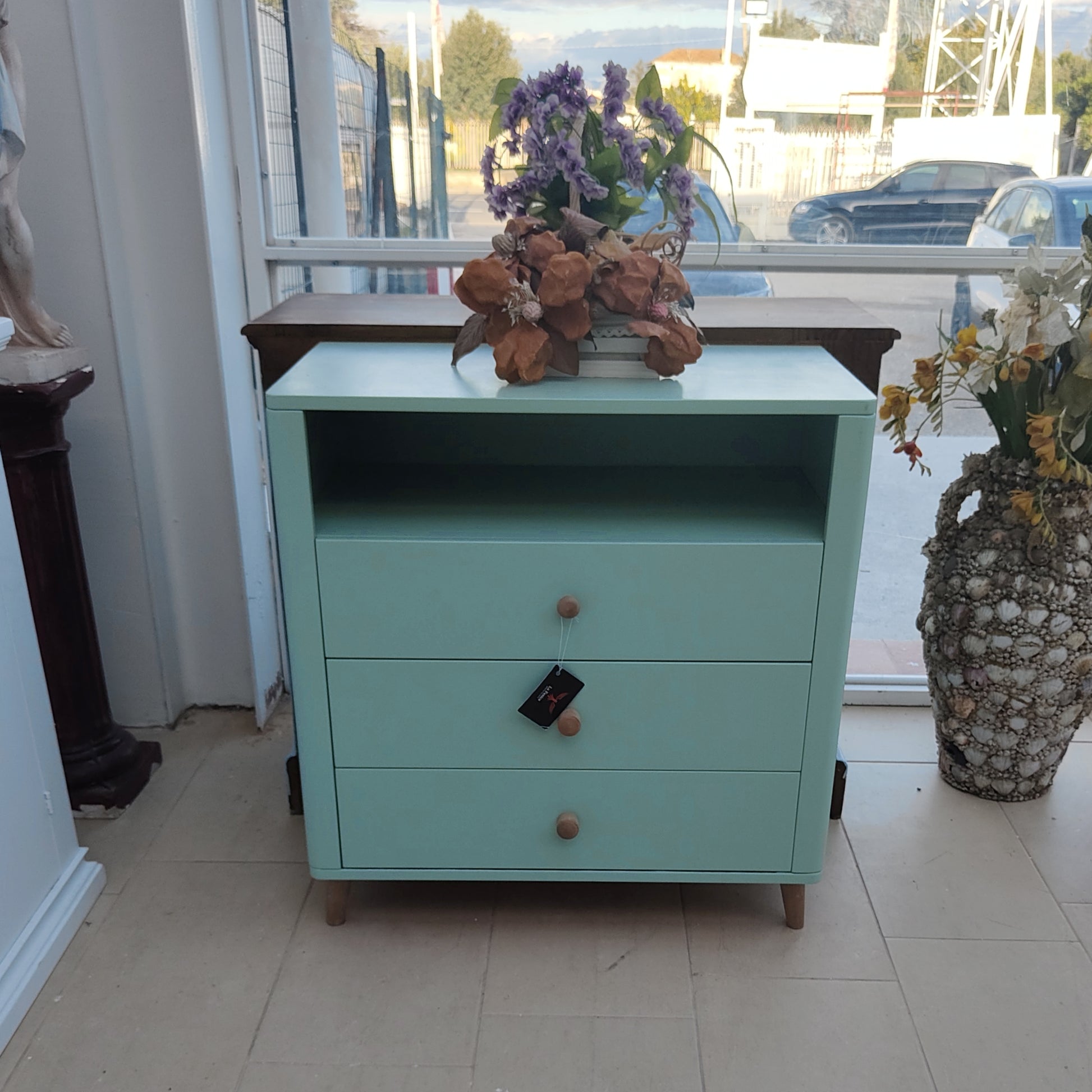 Realizzata a mano a artire da un mobile originale d'epoca.