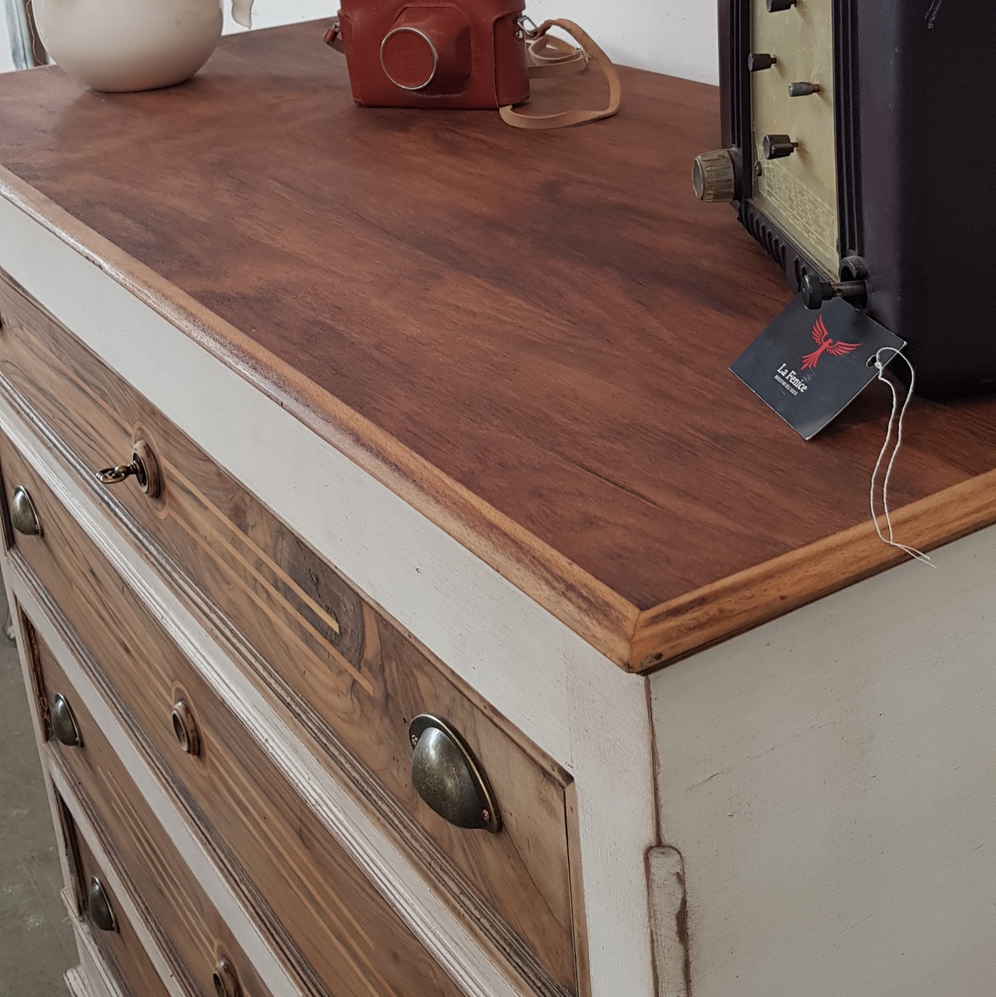 Comò in stile shabby chic realizzato a mano a partire da un mobile originale dei primi del '900.