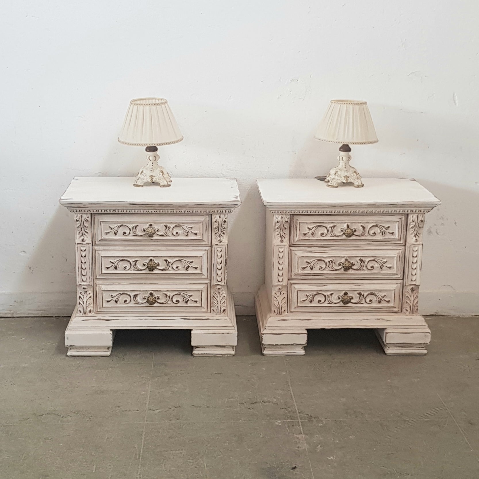 Coppia di comodininin stile shabby chic realizzati a mano a partire da mobili originali d'epoca.