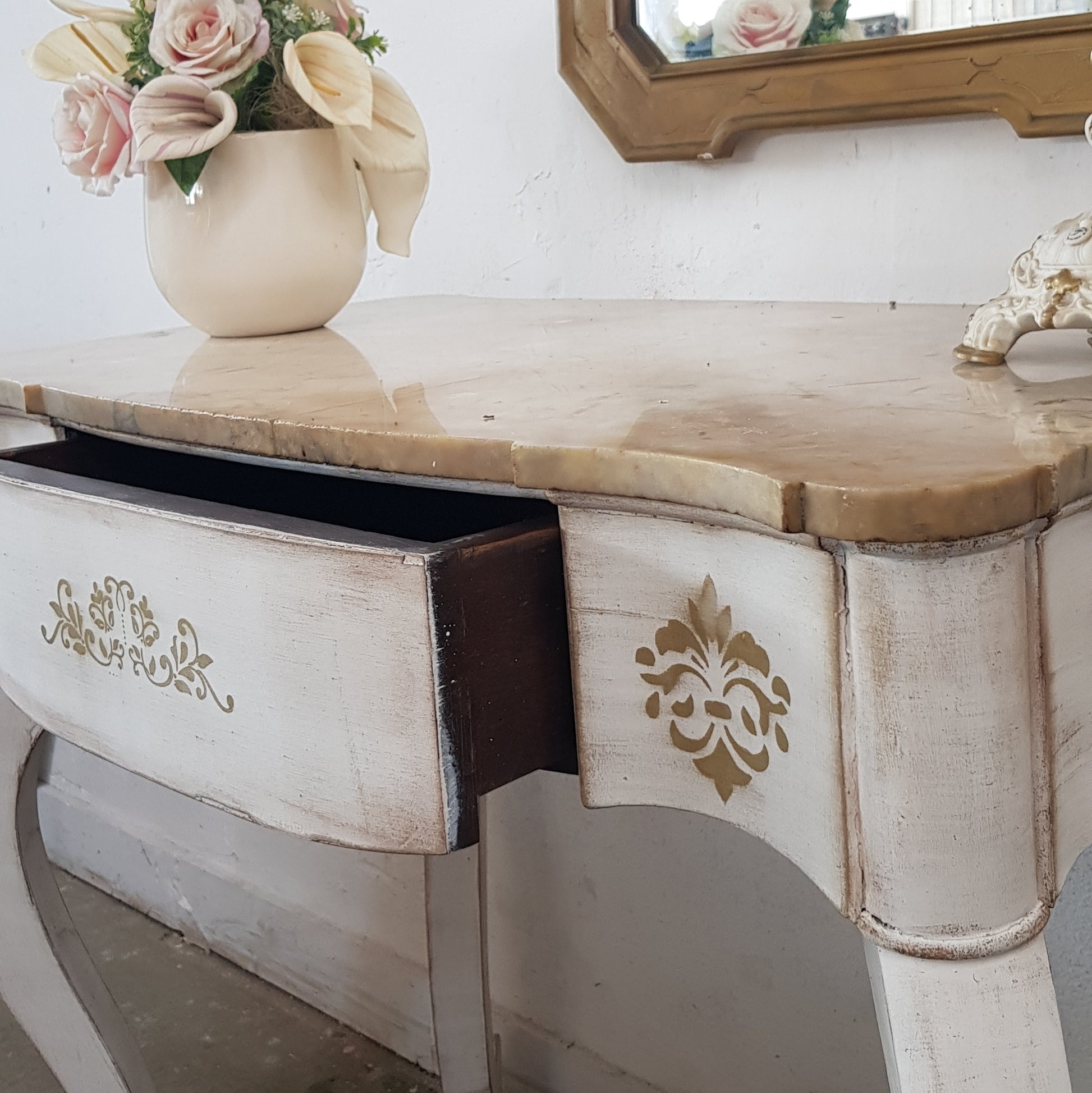 Consolle antica shabby chic con ripiano in marmo originale, realizzata a mano a partire da un mobile primi '900.