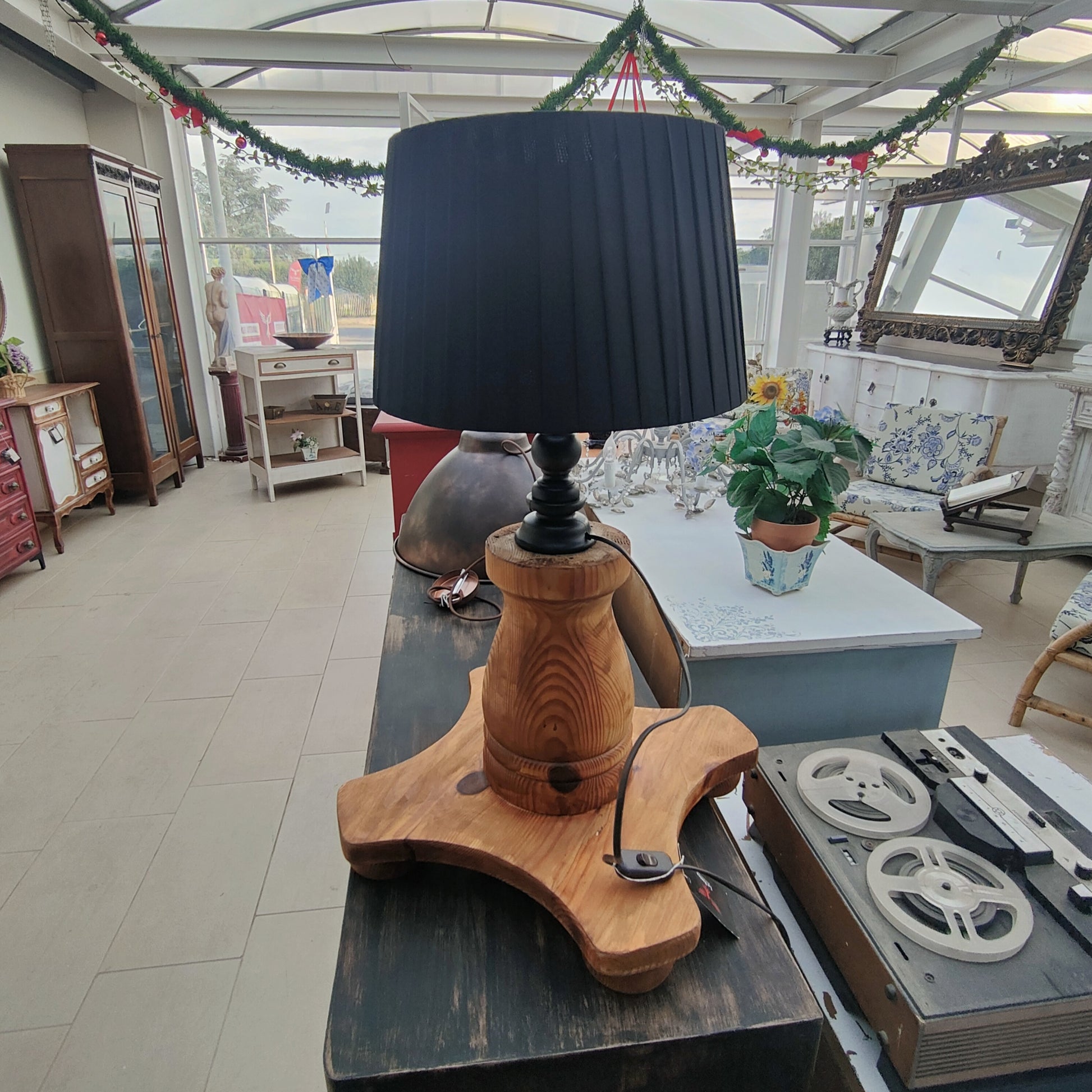 Lampada realizzata a mano, struttura in legno massello.