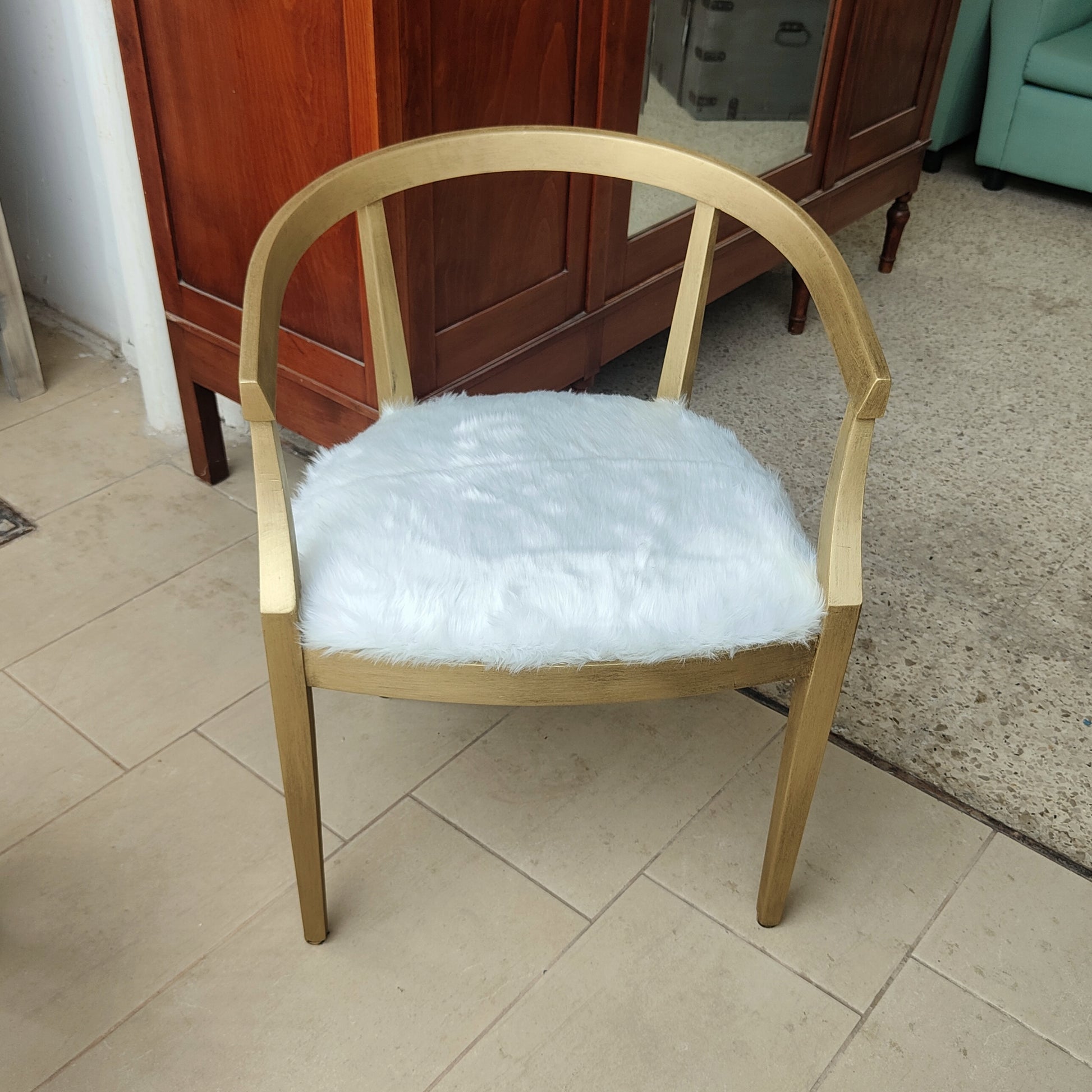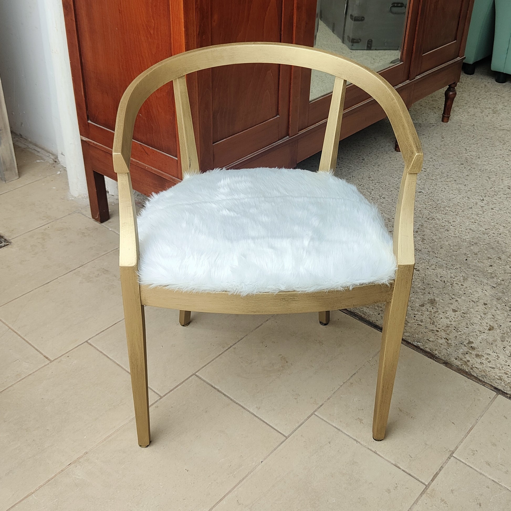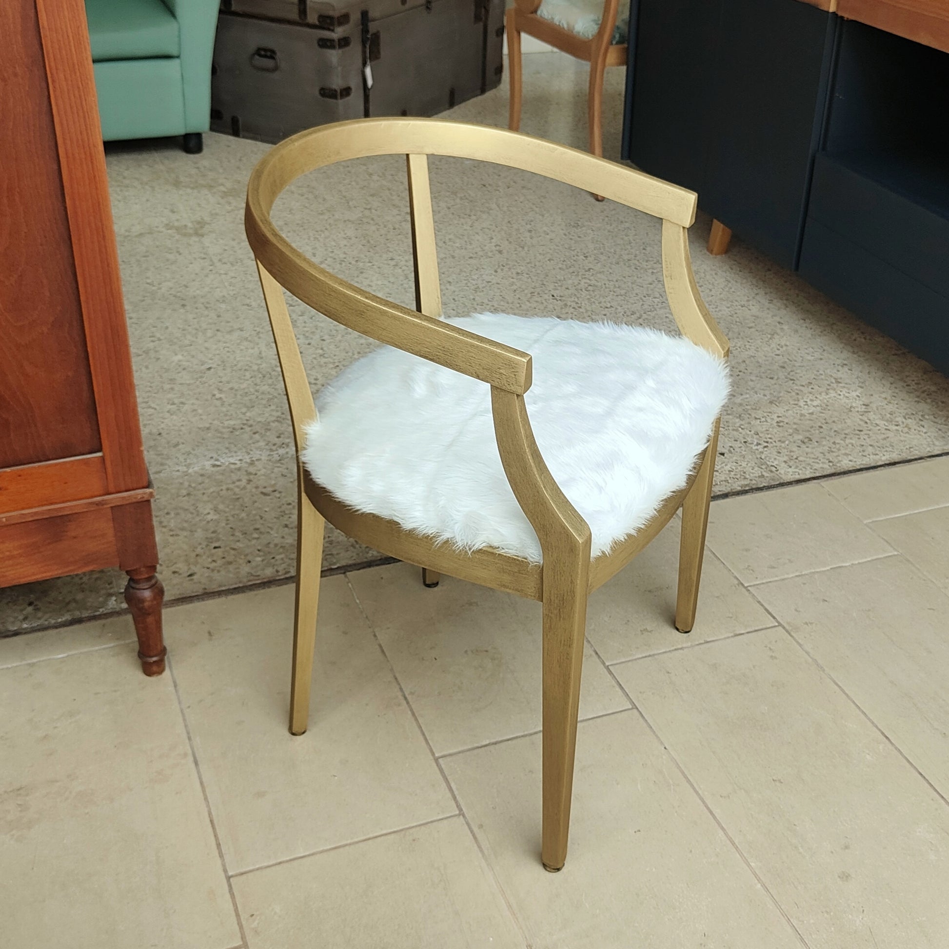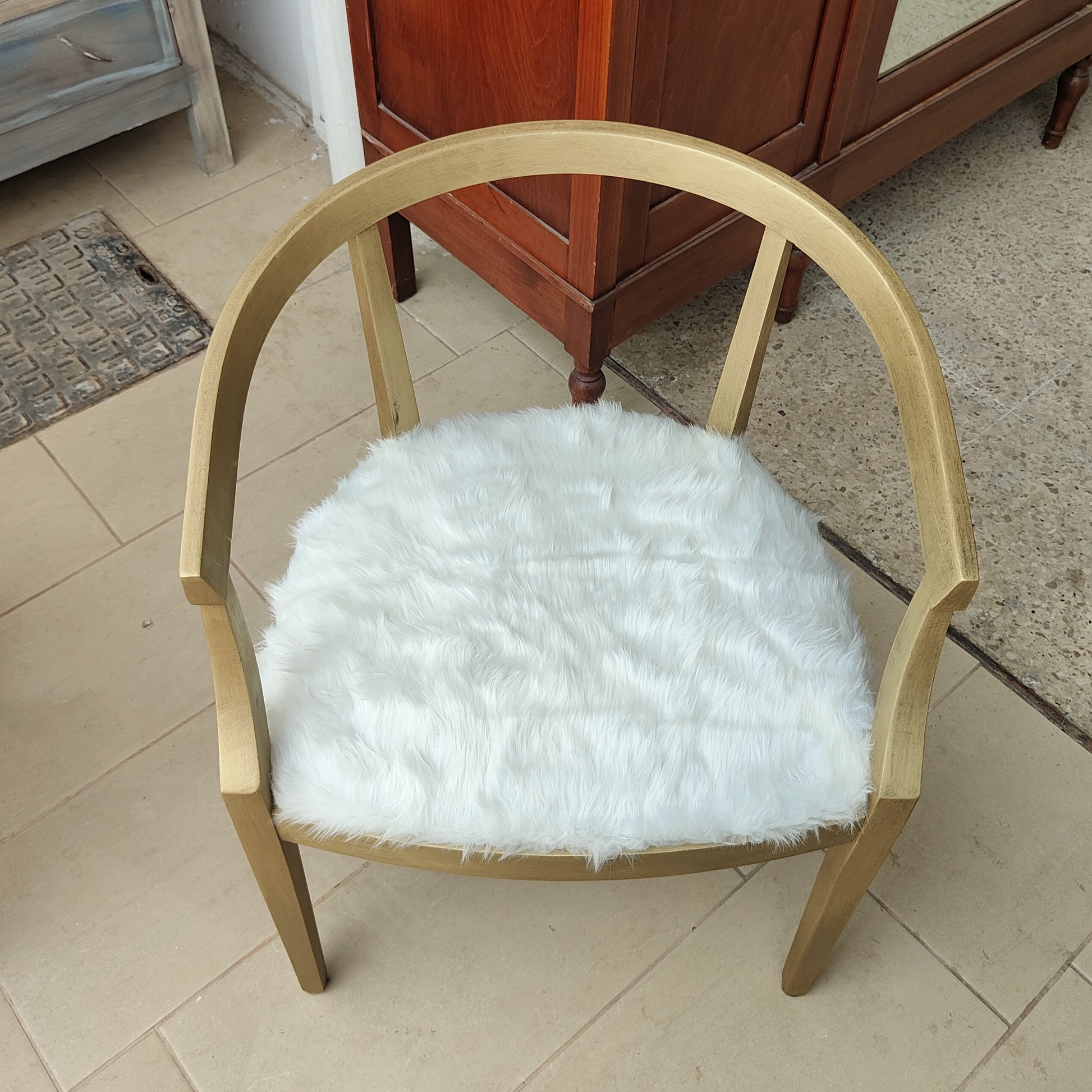 Materiale : struttura in legno decorata a mano ; tappezzeria in pelliccia sintetica
