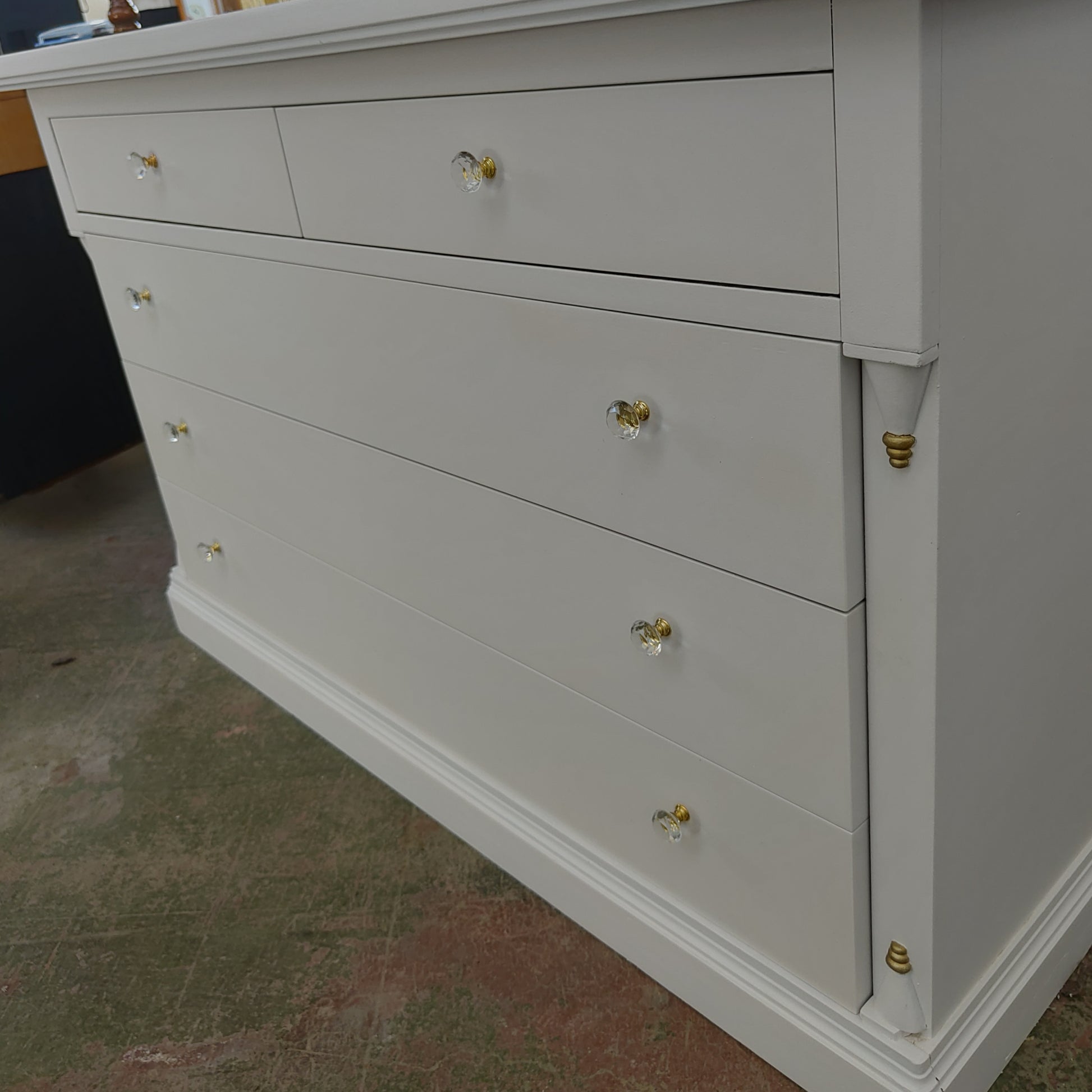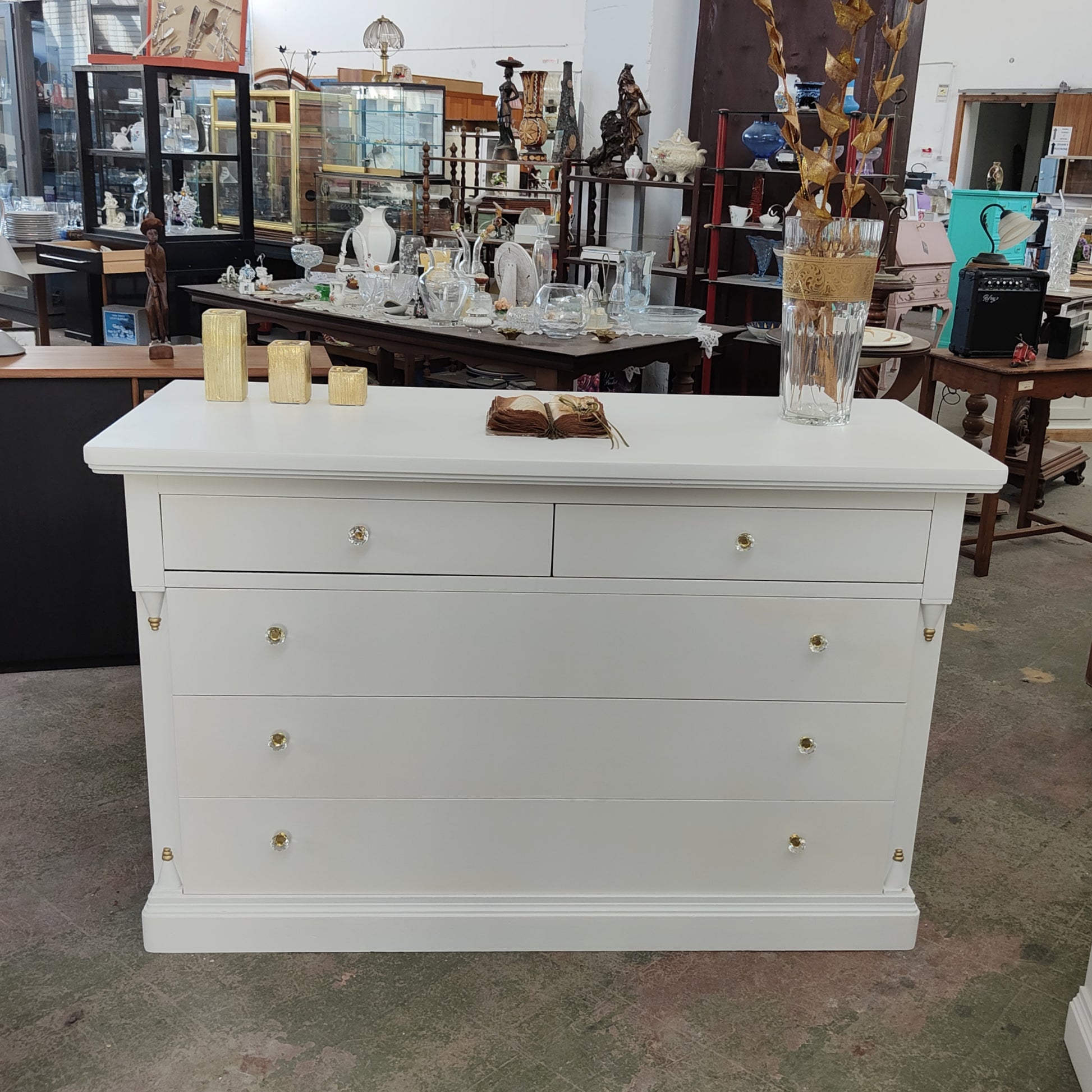 Colore : bianco porcellana, pomelli in ottone e vetro taglio diamante.
